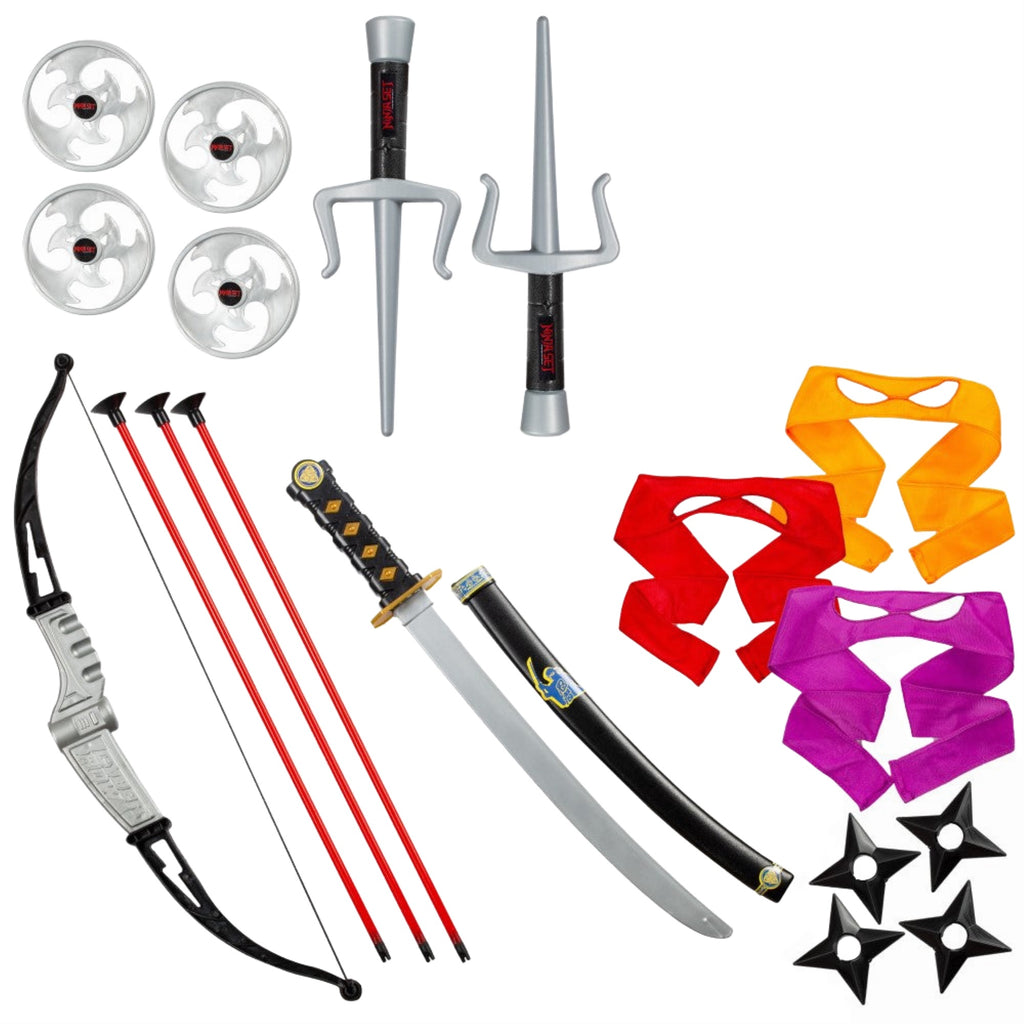 Ninjas Don'T Wish Upon A Star, They Throw Them. The Accessory Set Includes Everything Your Child May Need To Be The Best Ninja Warrior Out There.The Masks Come In 4 Colors For Both Girls And Boys. The Sais And Sticks Have Black Handles Have Red Ninja Set Written Across Them. The Disks Also Feature A Black Circle With The Red Ninja Set Written On It. Versatile: Great For Halloween Stage, Kids' Parties, Or One-On-One Playtime Year-Round. Additional Features: Very Durable: Resistant To Most Chemicals, Stretching Shrinking And, Wrinkle Resistant And Abrasion-Resistant. Polyester Is Hydrophobic In Nature Resulting In Quick Drying. Easy Wash And Dry.Available In Adults' Sizes:Medium, Large And X-Large. Why Dress Up America: Dress Up America Dedicates To Provide Customers With Excellent Service And Good Quality Products. We Are Proud To Be An Independent Company Featuring A Beautiful Collection Of Superb Quality Halloween And Year-Round Costumes. We Feature Fancy Dress Costumes, Wigs, Exciting Accessories In All Sizes Ranging From Infants, Boys, Girls, Teens, Men, And Women. We Pride Ourselves In Offering Only The Highest In Quality So Please Order With Confidence. Satisfaction Guaranteed: Dress Up America Works Hard To Ensure That They Only Carry Top-Of-The-Line Products. However, If You Have Any Issue With Theitem At Any Time, Please Contact Our Friendly Customer Service Team, And We Will Be Sure To Resolve Any Issue Right Away.We Appreciate Your Business. Ninjas Don'T Wish Upon A Star, They Throw Them. The Accessory Set Includes Everything Your Child May Need To Be The Best Ninja Warrior Out There.The Masks Come In 4 Colors For Both Girls And Boys. The Sais And Sticks Have Black Handles Have Red Ninja Set Written Across Them. The Disks Also Feature A Black Circle With The Red Ninja Set Written On It. Versatile: Great For Halloween Stage, Kids' Parties, Or One-On-One Playtime Year-Round. Additional Features: Very Durable: Resistant To Most Chemicals, Stretching Shrinking And, Wrinkle Resistant And Abrasion-Resistant. Polyester Is Hydrophobic In Nature Resulting In Quick Drying. Easy Wash And Dry.Available In Adults' Sizes:Medium, Large And X-Large. Why Dress Up America: Dress Up America Dedicates To Provide Customers With Excellent Service And Good Quality Products. We Are Proud To Be An Independent Company Featuring A Beautiful Collection Of Superb Quality Halloween And Year-Round Costumes. We Feature Fancy Dress Costumes, Wigs, Exciting Accessories In All Sizes Ranging From Infants, Boys, Girls, Teens, Men, And Women. We Pride Ourselves In Offering Only The Highest In Quality So Please Order With Confidence. Satisfaction Guaranteed: Dress Up America Works Hard To Ensure That They Only Carry Top-Of-The-Line Products. However, If You Have Any Issue With Theitem At Any Time, Please Contact Our Friendly Customer Service Team, And We Will Be Sure To Resolve Any Issue Right Away.We Appreciate Your Business.