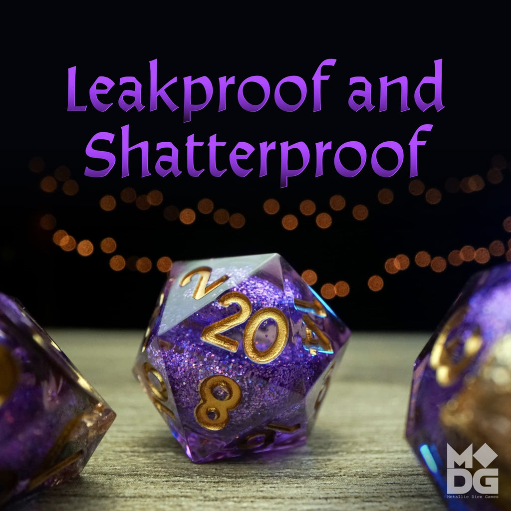 The 'Liquid Core' design adds a unique aesthetic to the dice, featuring a captivating swirl of colors within the resin, enhancing the visual appeal during gameplay.