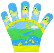 The mitts feature the words to the classic counting song 'Five Little Ducks' printed on a colorful backing card.