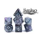 The Aether Dice: Limbo set is made from high-impact resin, which offers durability and prevents air bubbles from forming inside each die.