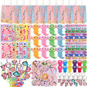 Large Quantity Axolotl Party Supplies: You will receive a total of 12 keychains, 12 stamps, 12 axolotl straws,12 slap bracelets, 12 make your own axolotl stickers, 12 gift bags and 50 axolotl stickers, such a rich combination is enough to meet your daily or party needs. Axolotl Design: Each accessory contains rich axolotl elements, fashionable and cute design. Whether youre hosting a birthday party or handing out these little gifts in class, they will be delighted to receive these axolotl goodie bags. Ideal Axolotl Gifts: Our axolotl gift sets are perfect as axolotl pinata fillers, party favor bags, axolotl party favors, birthday party axolotl decorations, gift bag fillers, classroom rewards, little axolotl party decorations gifts, party favors, carnival prizes, Easter basket fillers. These party favors are sure to be a hit! Reliable material: The Axolotl palm bracelet is made of flexible steel plate and is not prone to fading. The gifts for the axolotl party are safe and reliable, odorless, brightly colored, and have smooth and round edges. Practical Application: These axolotl toys and paper bags can be used at home, school, hotel, office and other occasions. Stickers and slap bracelets to keep your friends entertained at parties.