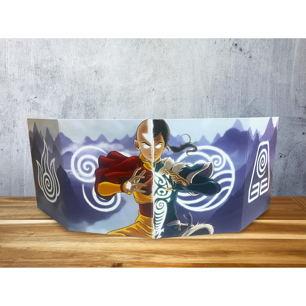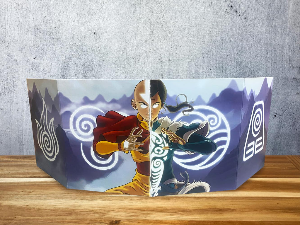 The Avatar Legends Gamemaster Screen measures about 8.5" x 11" when folded and expands to 34" when fully unfolded.