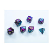 Purple And Teal Gemini Mini Dice With Gold Colored Numbers 10Mm (3/8In) Set Of 7 Chessex