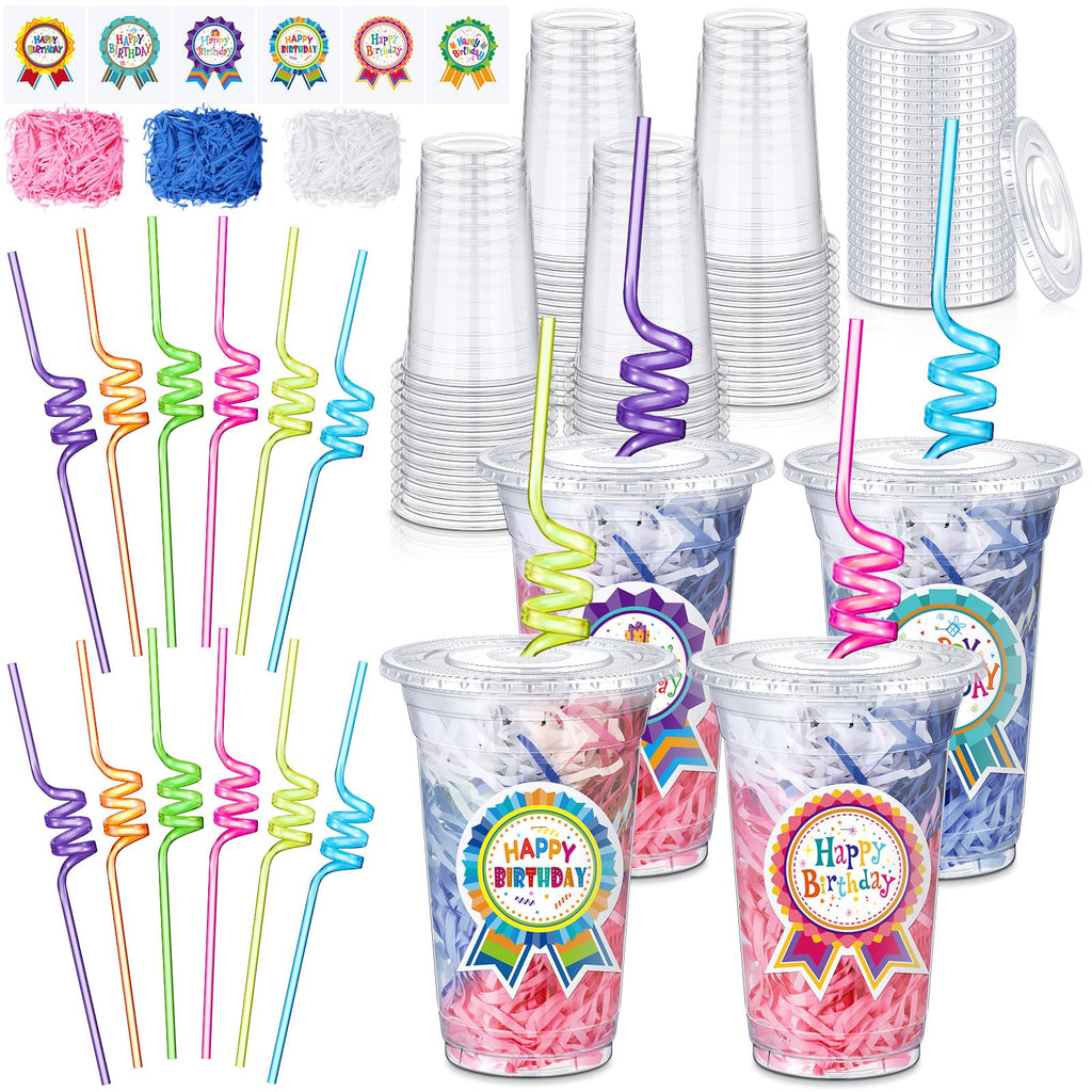 Features: Convenience Birthday Kit: No last-minute shopping! Get 24 plastic cups with lids, 24 straws, 3 raffia bundles, and 24 stickers in one bundle. Assemble happy birthday gifts quickly by filling cups with treats, raffia, and a sticker-ideal for busy teachers or parents. Memorable Celebrations: Fill cups with raffia, sweets, and a sticker, then add a colorful straw for whimsy. Ideal as classroom birthday gifts, game prizes, or party favors, they spark excitement for kids and adults alike. Transform any event into an unforgettable celebration! Specifications: Main Material: plastic Color: Plastic cups with lids: transparent Raffia: white, blue, pink Straws: orange, blue, pink, purple, green, yellow Size: Birthday stickers: 7 x 6.1 cm/ 2.76 x 2.4 inches Plastic cups: 600 ml/ 20 oz Raffia: 30 g Package includes: 24 x Birthday stickers 24 x Plastic cups 24 x Plastic lids 24 x Straws 3 x Raffia Notes: Manual measurement, please allow slight errors on size. The color may exist a slight difference due to different screen displays.