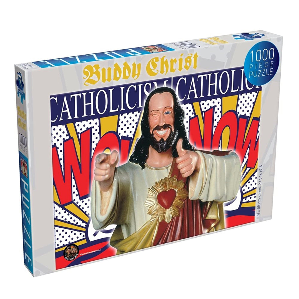The puzzle features the uplifting Buddy Christ from Kevin Smith’s Dogma, making it a unique addition for fans of the film.