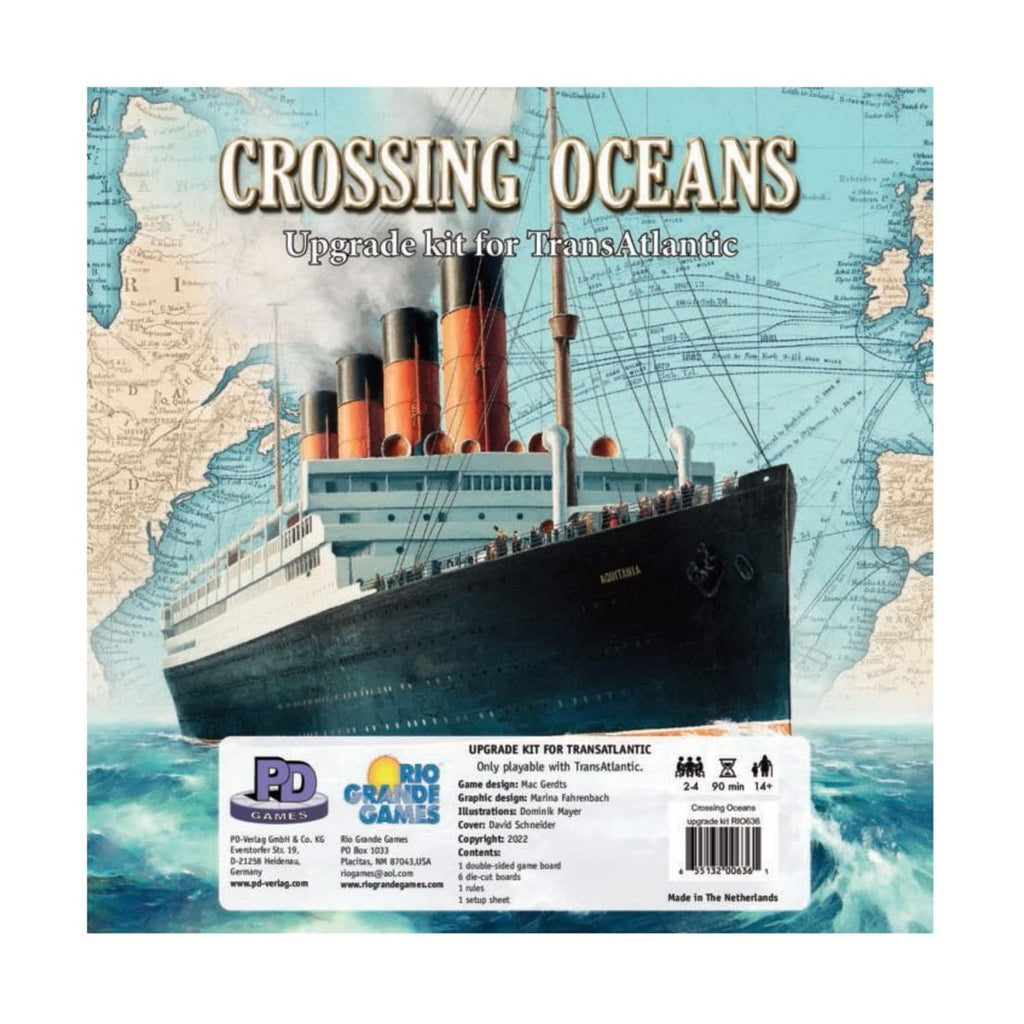 The Rio Grande Games Transatlantic - Crossing Oceans Upgrade Kit is designed for owners of the original TransAtlantic board game, enabling them to upgrade their game to the Crossing Oceans version. It includes necessary components such as wooden pieces and banknotes from the original game.