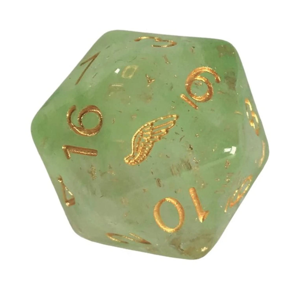 The d20 features a special symbol on its highest face, which is a Griffin Head symbol.