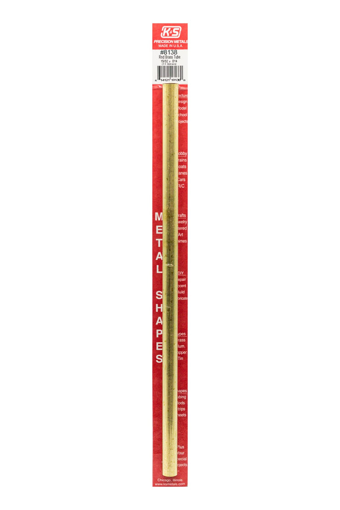 The K&S Precision Metals Round Brass Tube has a diameter of 15/32 inch and a length of 12 inches.