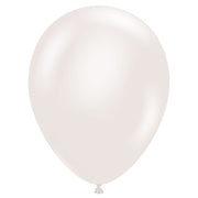 These 11 round solid color Pearl Sugar White latex balloons from TUFTEX are perfect for making balloon arches, balloon columns, balloon clusters, and other balloon decorations. Color coordinate these latex balloons with themed foil mylar balloons for the ultimate balloon bouquet! Package includes 100 11 TUFTEX Pearl White latex balloons. The balloons can be inflated with helium to float. Balloon arrives uninflated.