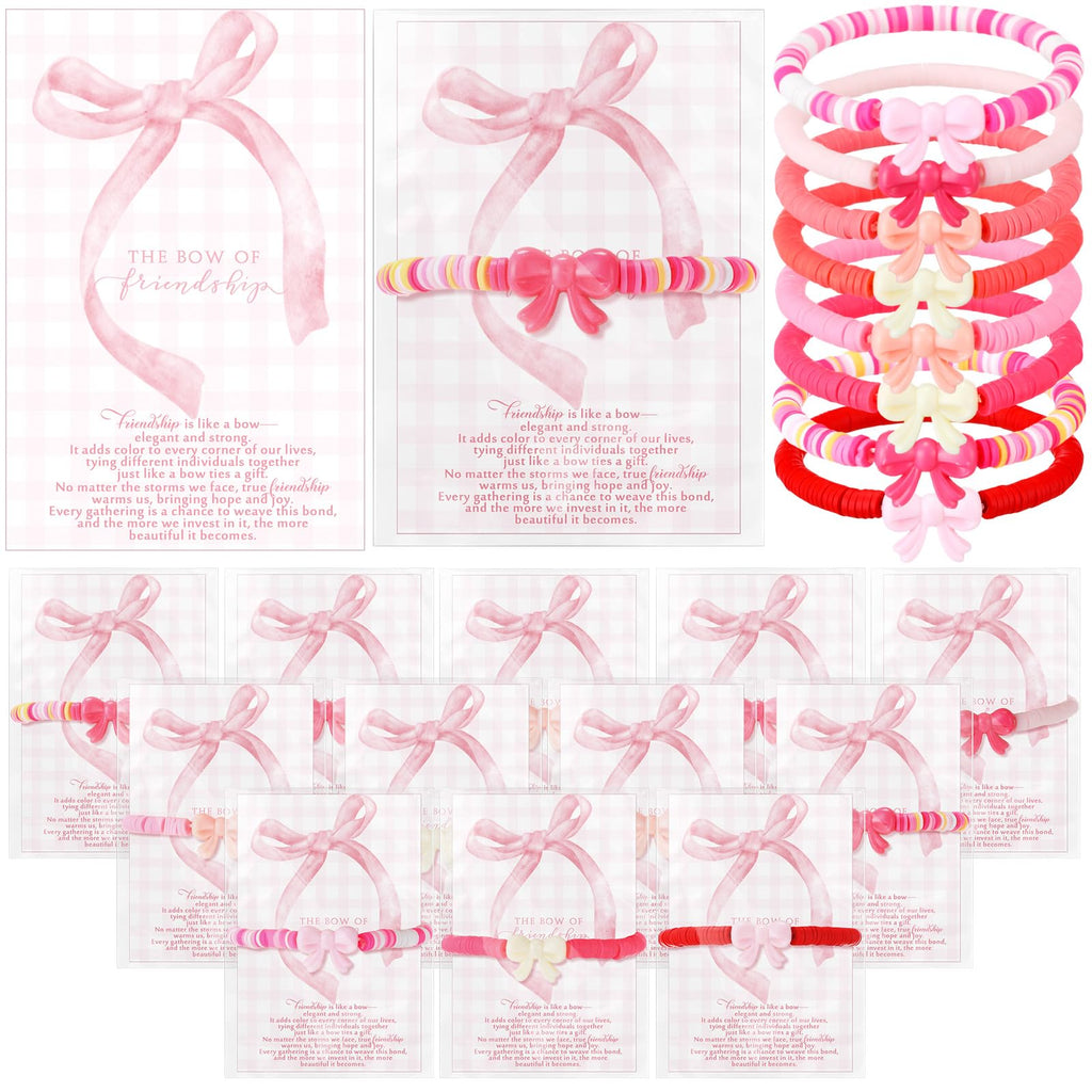 Zeyune 24 Set Pink Bow Friendship Bracelets Friendsgiving Gifts Clay Bead Adjustable Bestie Friendship Bracelets Inspirational C