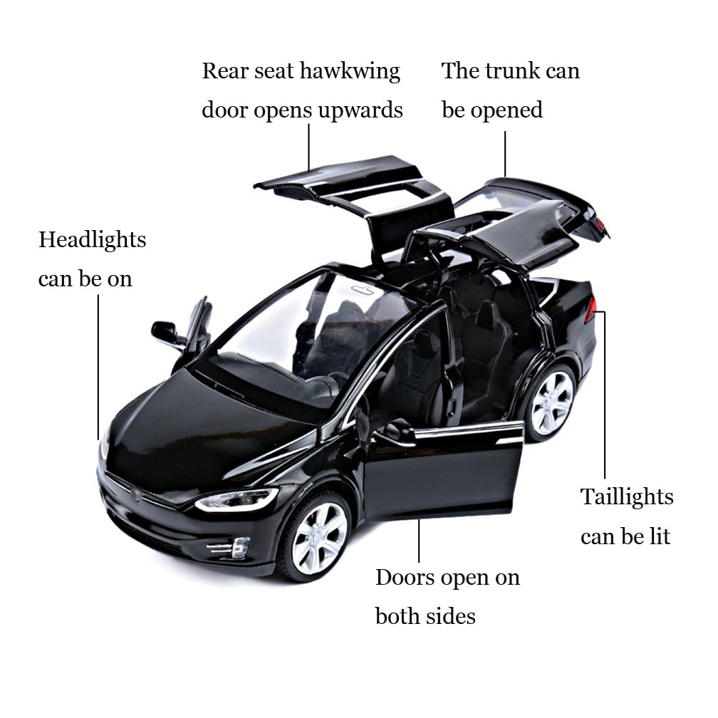 1/32 Model x Metal Die Casting Toy Car for 3 to 12 Year Old Boy Pull Back Car Toy with Sound and Lights (Black)
