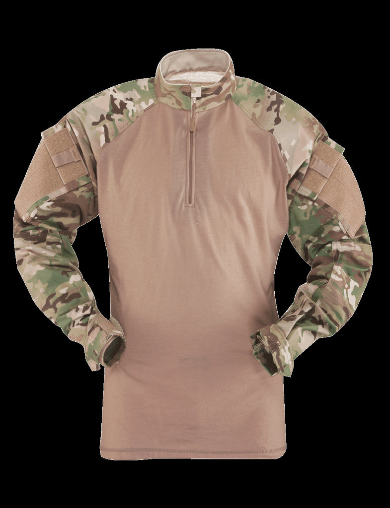 The shirt is constructed from a blend of 60% cotton and 40% nylon CORDURA Baselayer fabric, which is designed to be durable and breathable.