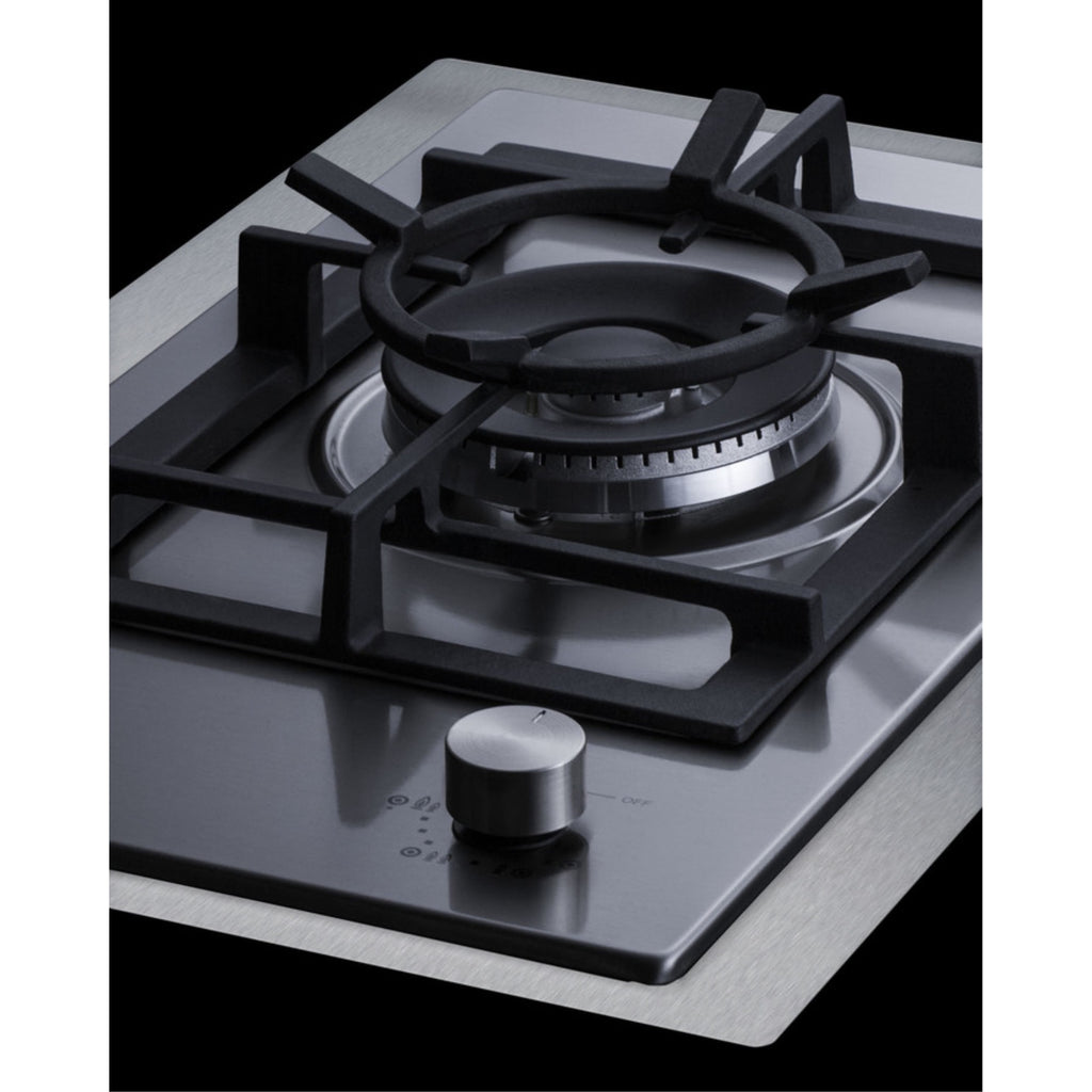 Summit'S Made In Italy Gas Cooktops Offer A Powerful Performance In A Durable, Safe, And Stylish Design. The Gcj1Sstk15 Is A One-Burner Gas Cooktop Ideal As An Add-On To Kitchens And For Families Who Would Like Additional Burner Capacity. The 304 Grade Stainless Steel Surface Offers An Elegant, Durable Finish. We Include A Trim Kit That Allows The 12 Wide Cooktop To Fit In Wider In 15 Wide Counter Spaces. This Unit Includes A Cast Iron Grate And Removable Wok Ring. Upfront Heavy Duty Knobs In A Matching Silver Finish Complete The Look. For Added Safety, The Knobs Require A Gentle Push-To-Turn Motion To Ignite, With Thermocouple Flame Protection To Ensure The Gas Turns Off If The Flame Goes Out. Featuring A Burner Manufactured By Defendi, This Cooktop Offers A Wide Heating Range. The Dual Burner Has A 15,300 Btu Output, While The Inner Flame Can Reach Up To 2,050 Btus For Lower Heat Applications.The Gcj1Sstk15 Uses Electronic Spark Ignition And Is Preset For Natural Gas Operation. It Ships Set For Natural Gas But Includes A Conversion Kit For Lp Connections. A Standard Three-Pronged 115V Cord Is Pre-Installed For Easy Hookup.Our Made In Italy Cooking Collection Has Gas Cooktop Options To Fit Any Cooking Need, Including Two, Four, And Five Burner Choices. Browse Our Website To Explore The Full Collection.Note: This Cooktop Can Fit Cutouts Starting At 11.25 Wide, With The Trim Kit Included To Cover Additional Space Up To 15 Wide.