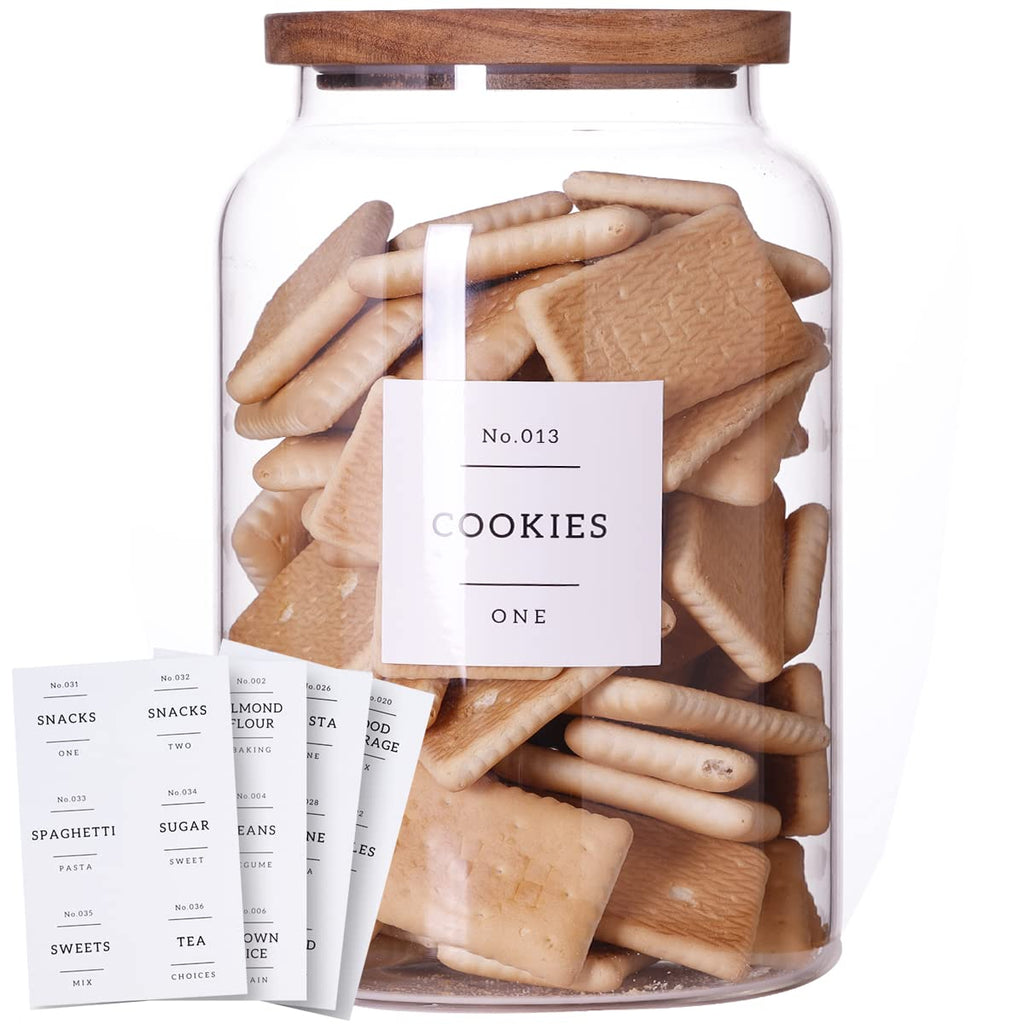 1 Gallon Large Glass Cookie jar with Airtight Acacia lids - Thicken Big Food Storage Containers with 42 Kitchen Waterproof Pantr