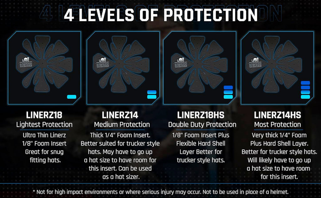 1 Pack Linerz Foam Plus Flexible Hard Shell Bump Cap Hat Inserts Ventilated Lightweight Universal Trim to Fit LINERZ18HS1PACK