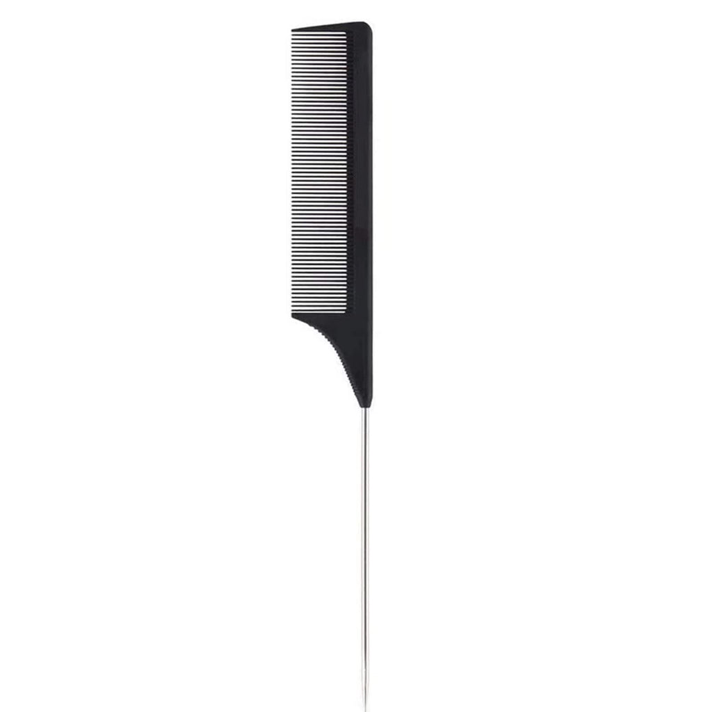 1 Pack Professional Carbon Steel Tail Combs Heat Resistant With Metal Pick, Anti Static Black Styling Tail Hair Comb Fine Teeth,