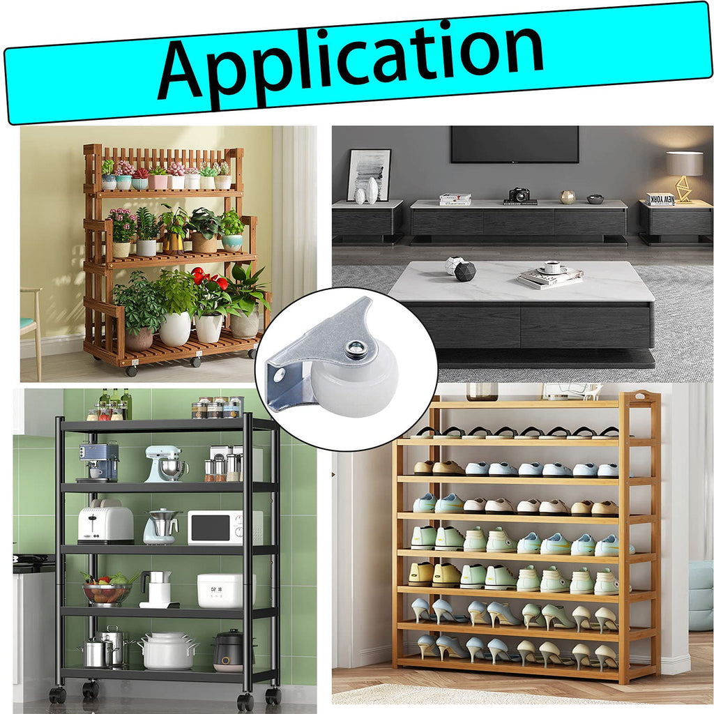 Mlxkell 1 small caster wheels Rigid Non Rotating casters with Metal top Plate, Hard Plastic Wheels for Furniture Description: ?Provide low starting and rolling resistance, roll quietly and smoothly. ?Used widely for thesmall machinery, trolleys, furniture and appliances equipments . ?Note: Each caster capacity is 5kg, total capacity for all 4 casters is 15kg (calculated by 3 casters ). Because when the ground is uneven , there will be only 3 casters bearing weight. Features: ? Capacity: 5kg / 11lb per wheel. ? Wheel Dia: 25mm / 1inch ?Style : Rigid Non-Swivel ,No Brake. ? Top Plate Size: 42 x 19mm / 1.7 x 0.75inches (L * W) ?Mounting Hole Diameter: 4mm / 0.16inches ? Hole Center To Hole Center: 32mm / 1.3inches ? Wheel Material: High Quality plastic, durable ?Wheel Width: 13mm / 1 / 2inch Package Include: ?20 Pcs x Mini Caster Wheel;Comes with screws for easy install.