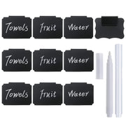 10 Pieces Plastic Basket Bin Label Clip on Removable Basket Label Kitchen Pantry Basket Label Clip with 2 Pieces White Chalk Markers for Storage Bin Basket Box Hanging Bin Clip Label Features: Suitable for kitchen, bedroom, cloakroom, bathroom, living room, pantry, laundry room, storage room, linen closet, main bathroom closet, cleaning supplies, office, etc. You can write words on baskets bin labels with pen, it can be wiped off with paper towels, no need stickers and labels Adopting quality PVC material, which and washable, strong and reliable, not easy to break and deform. Specifications: Material: PVC Size: approx. 9 x 6.35 cm/ 3.54 x 2.76 inch Label's color: black Package includes: 16 x Baskets bin labels clips 2 x White chalk markers Notes: Due to manual measurement, please allow slight differences on size. There might have slight color differences due to different displays.