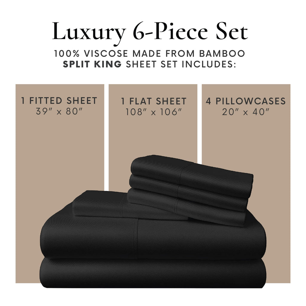 100% Viscose From Bamboo 7 Piece Split King Sheet Sets Fits Up to 16 Deep Pocket - Black