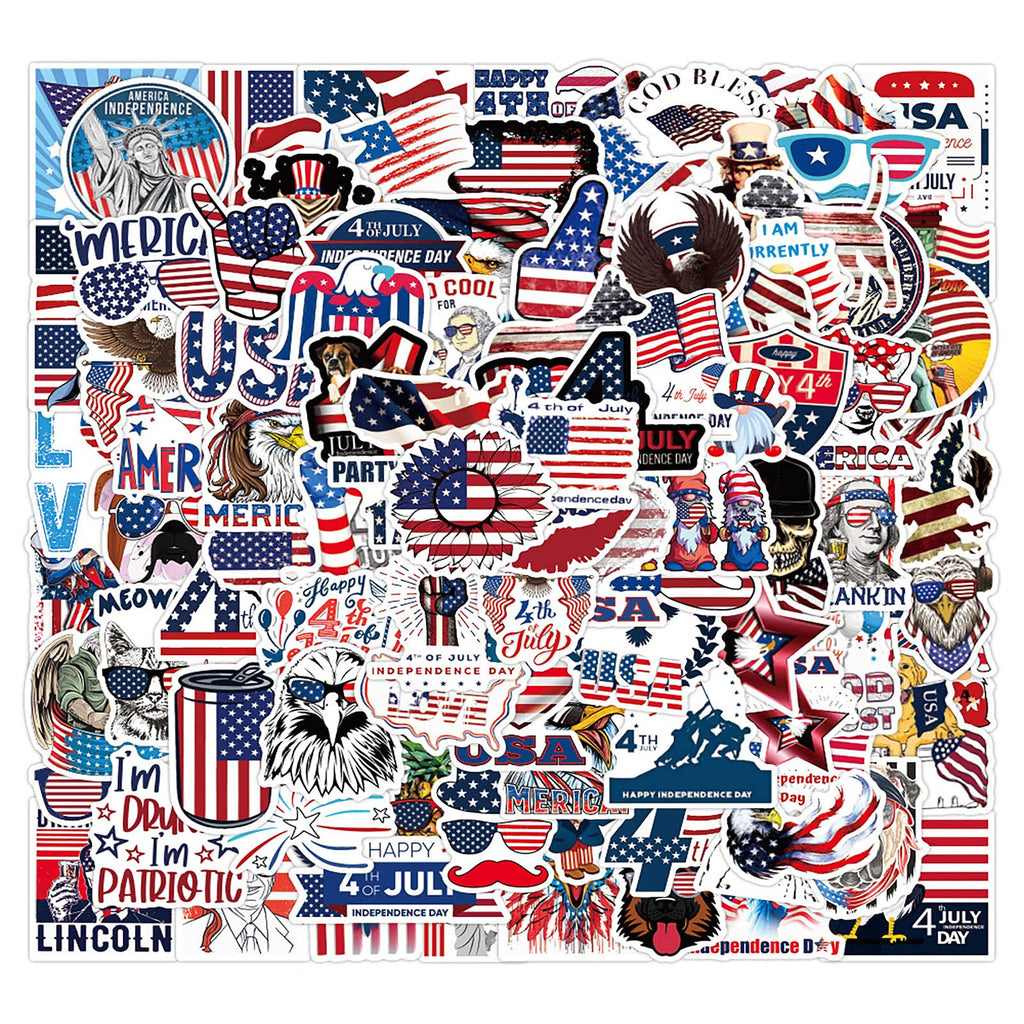 100pcs American Stickers Independence Day Aesthetic Vinyl Stickers Stickers for Laptop Water Bottle Hydro Flask Bicycle Computer