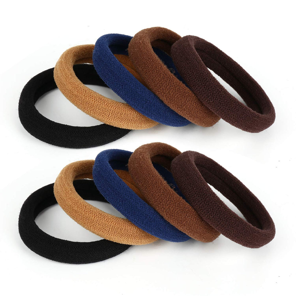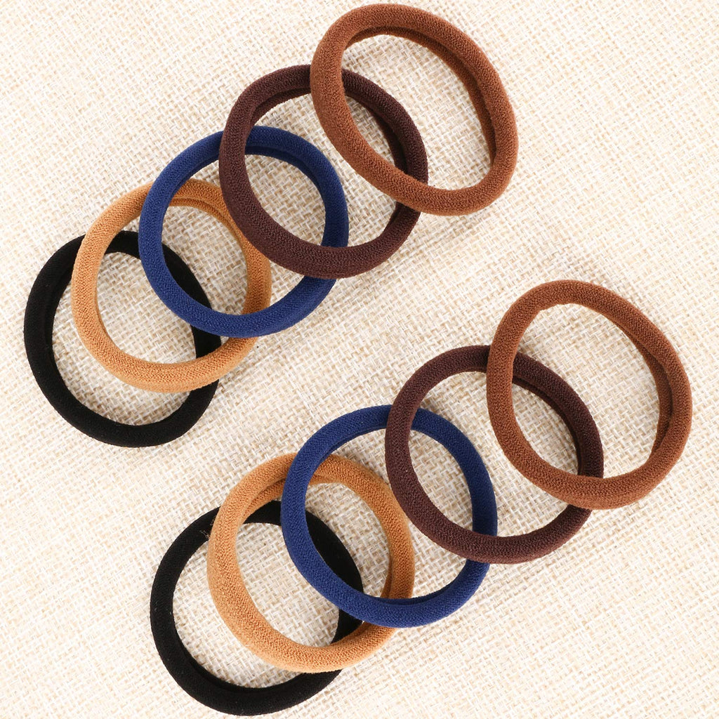 Product Specifications: Material: elastic spandex and cotton Quantity: 100 pieces Width: 0.4 inch (about 1 cm) Diameter: 2 inch (about 5.0 cm) Color: 5 colors , dark brown,brown,light brown,blue and black Package includes: 100pcs large elastic hair ties in a pearly bag Features: 1.Seamlessness - never hurt your hair 2.Strong stretch - always keep the hair firmly 3. Durability - saving your money 4.Easy match - suitable for all your dress and hairstyles 5.Widely use - appropriate for any people with thick heaby hair Note: Keep far away from babies to avoid accidents