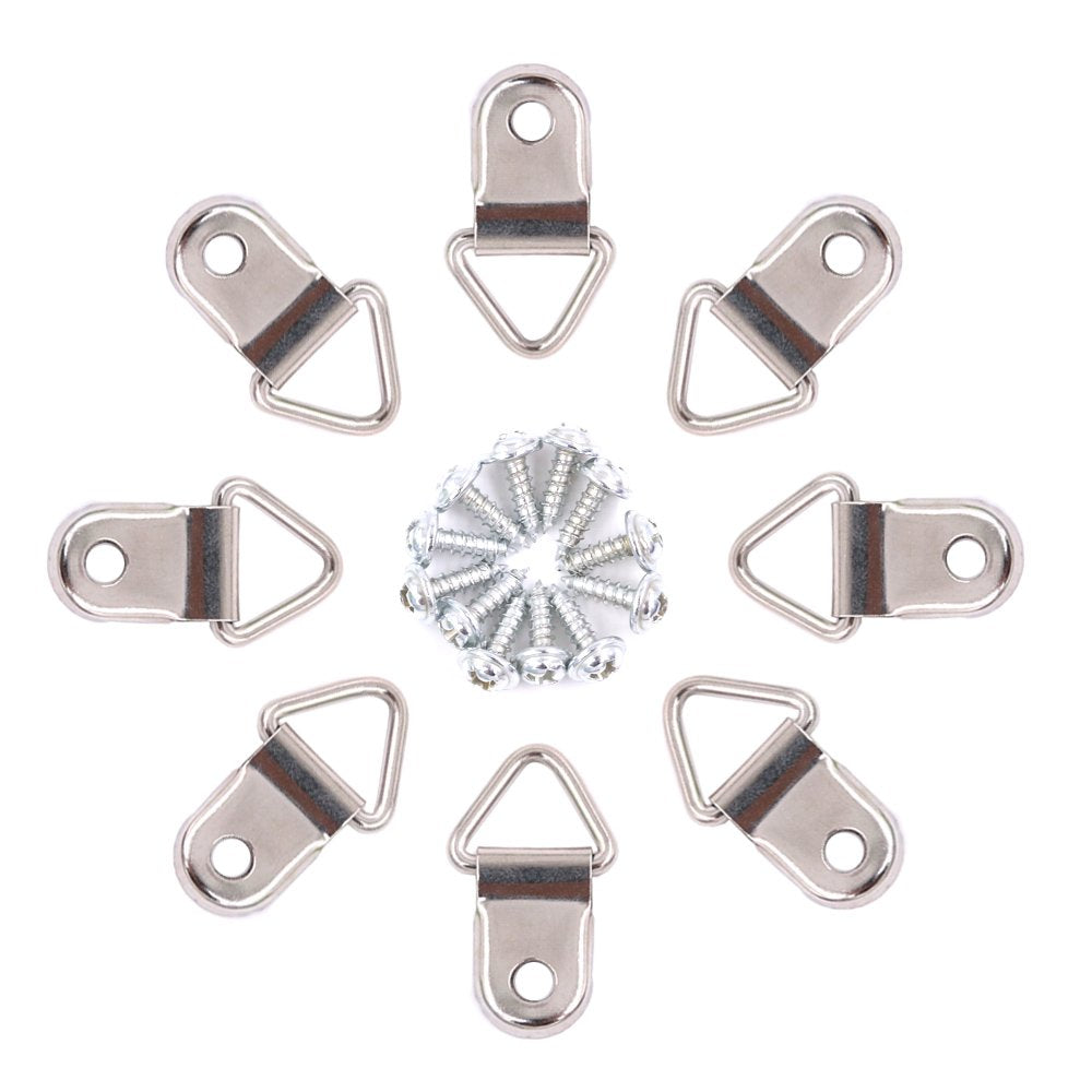 Features: Your home will love this kit! Picture hangers are very useful to hanging pictures and small objects on your wall. Single screw hole allows for the ring hanger to be securely attached to a wood picture frame or wood project. Get yours today and make your home happy! Specifications: Material: Steel Finish: Nickel Plated Color: Silver Package includes: 110 x Picture Hangers 110 x Screws 1 x Transparent box