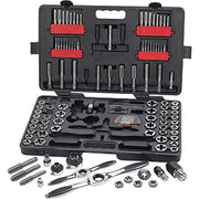 5 Degree Ratcheting Arc With Reversible Lever Eliminates Hand Over Hand Turning Patented Twist Lock Guide System Reduces Back Walk Of Die Guide Extension Adapters Provide Access In Tight Confined Areas.Length Of Tap And Die System Can Be Extended By Combining Adapters And Any 3/8 Drive Extension. Tap Holders Tilt Down For Easy Access Keeping Taps Secure And Organized Works With Round And Hex Shaped Dies Includes 4-40 To 3/4 And 3 To 18Mm Sizes