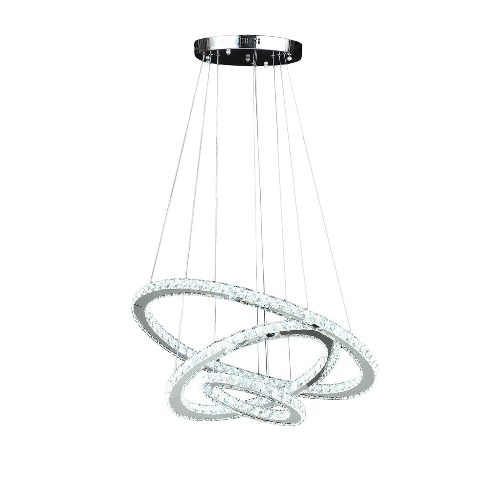 Strikingly Attractive And Uniquely Crafted, This Brilliant Silver Ceiling Lamp Brings Charm To Any Space In Your Home. It Features Glittering Clear Crystal Accents, Integrated Led Lighting, A Remote Control, Adjustable Height, And A Dimmer Switch, All Adding Up To A Remarkable Sense Of Convenience. The Ringed Design Brings To Mind Images Of Planets, Galaxies, And The Wonders Of The Natural World.