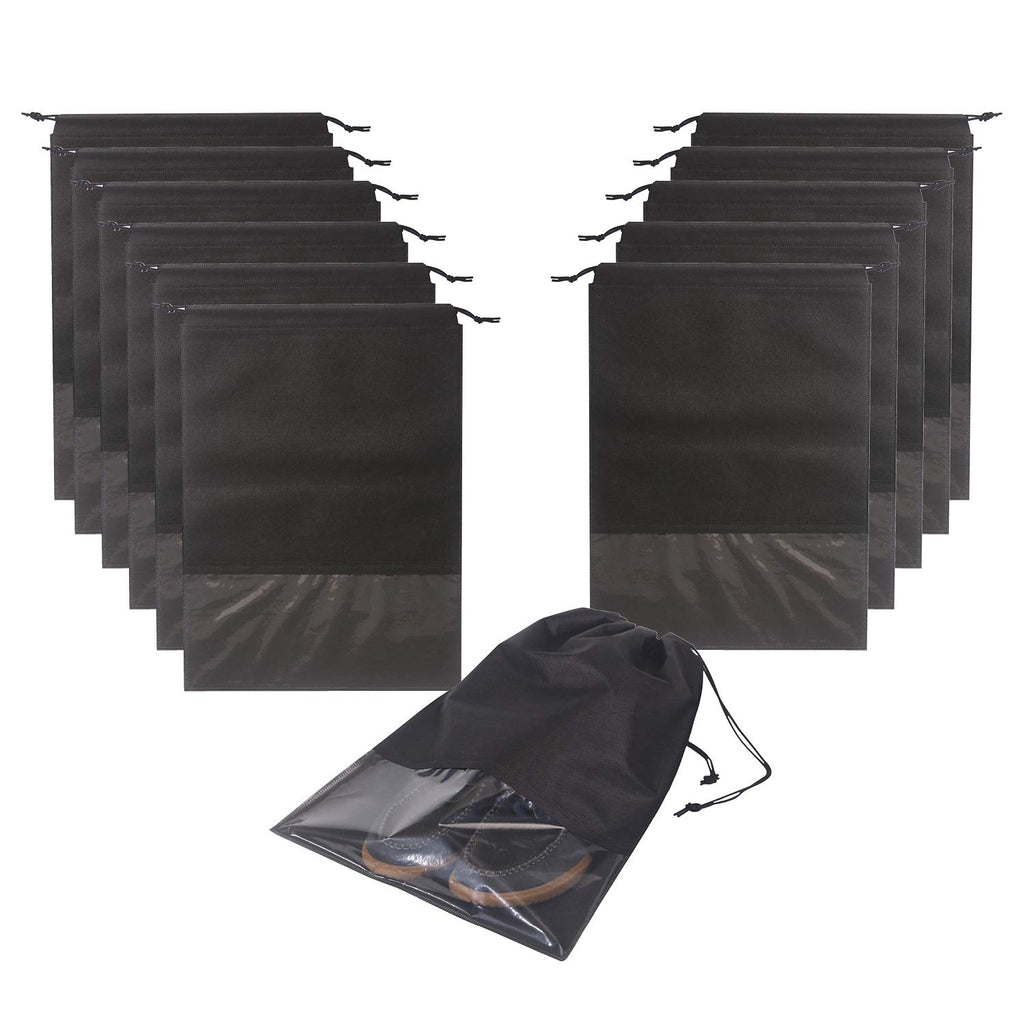 1, Suitable For Daily Use & Travel: Protects Your Shoes Against Scuffs And Scraps When Storing In Suite Case, Keeps Your Shoes Well Organized And Dust Free In The Closet 2, Size:173A X 126A Set Of 12 Perfect Size For Womens And Mens Shoes Covers Ideal For Packing Dance Shoes, Flip Flops, Sneakers, Hiking Tennis Golf Shoes Works As Travel Organizer In Your Luggage Or Suitcase 3, Made Of Non-Woven Fabric With Thick Drawstring For Convenient Organization And Durable Use 4, Convenient: A Transparent Window On The Bag, It Shows Clearly Which Shoes In It 5, Multi -Function: Not Just A Large Shoes Bag, Also Can Be Used As Makeup Bag, Shoe Accessories Bag, Travel Bags, Toiletry Bag, Packing Bags, Gym Bag, Laundry Bags Travel, Dust Bag, Drawstring Bag, Shoe Storage Organizer Bag And For Other Uses