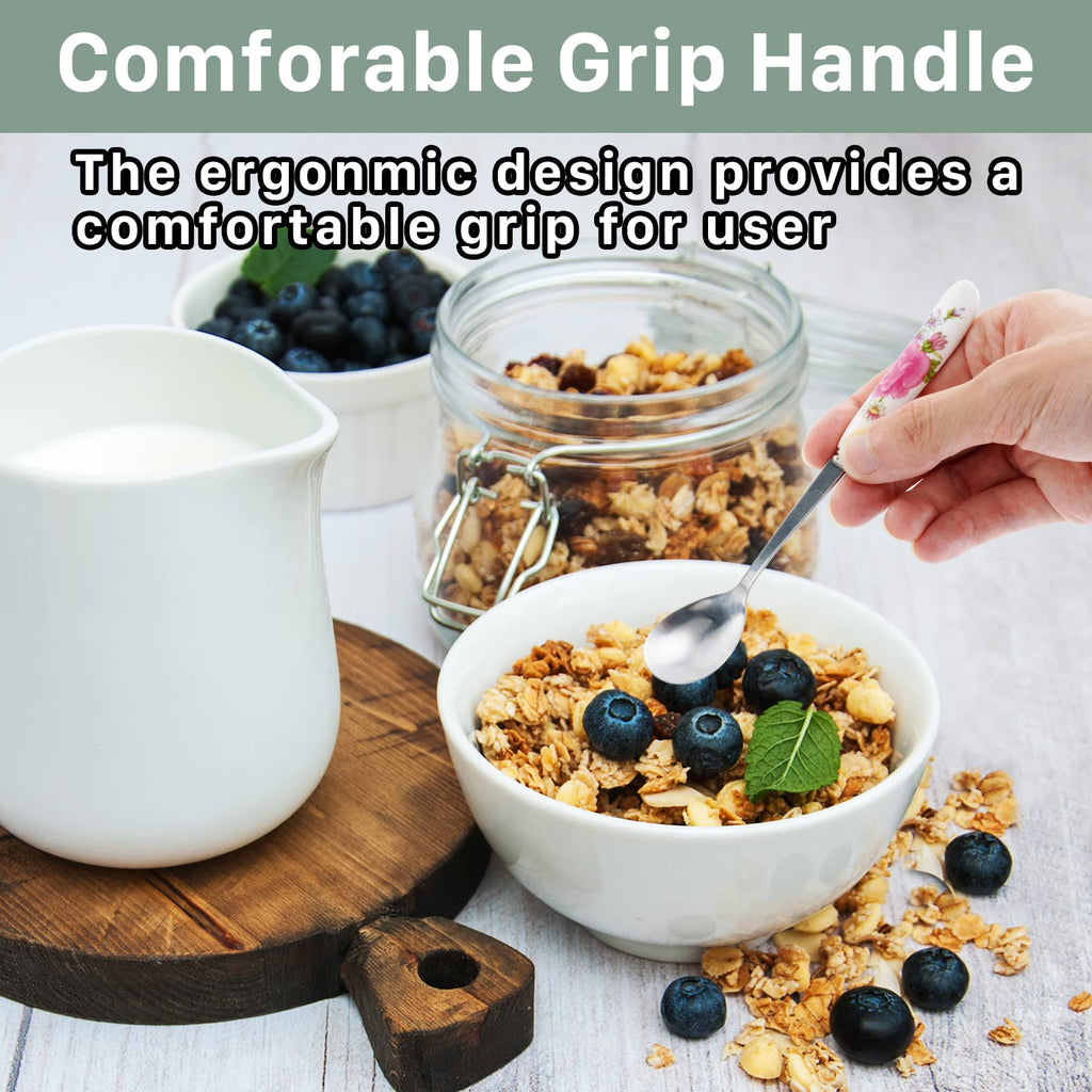 14 Pcs Dessert Forks and Spoons Silverware Set,Stainless Steel Small Appetizer Forks,Mini Coffee Spoons Salad Fork with Ceramics