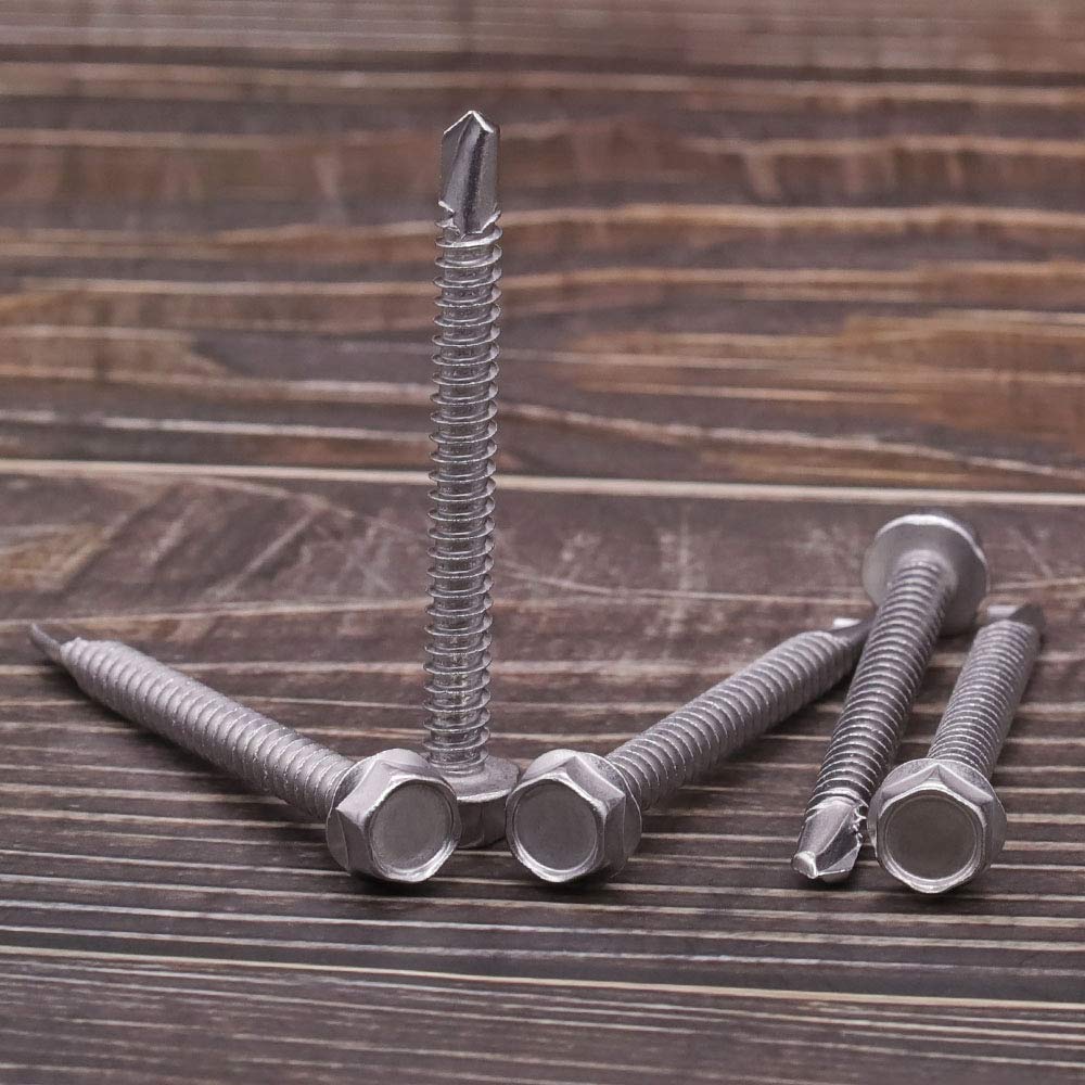 Size: #14 X 3 Specification: Screw Diameter: #14 (6.3Mm) Screw Length : 3 (75Mm) Material: 410 Stainless Steel ( Tensile- 180,000 Psi, Hardness- 40 Rockwell C) Thread Type: Un Thread Style: Right Hand Installation Type: Screw In Color: Silver Tone Package Included: 25 Pcs Hex Washer Head Self Drilling Screws Are Designed With A Drill Point At The Tip To Pre-Drill The Screw Hole As You Go With A Thrilling-LikeAction (Threading Or Drilling) To Eliminate Separate Drilling, Tapping, And Installation Actions. The Length Of The Drill Determines The Material Thickness Which The Screw Can Reliably Penetrate. They Are Ideal Use For Wood, Metal Or Other Tough Materials And Known For Their Effecient Application Performance And Endurance. You Could See Them Around Because They Are Widely Used In A Variety Of Industries Such As Construction, Manufacturing, Engineering, Assembling And So On. The High Quality 410 Stainless Steel Provide Perfect Strength And Good Corrosion Resistance In Bad Environments Like High Temperature, Cold Weather And High Humidity Areas Without The Need For Time Consuming And Costly Maintenance. Contact Us: If You Have Any Questions When Using, Please Feel Free To Contact Us By Amazon Message.
