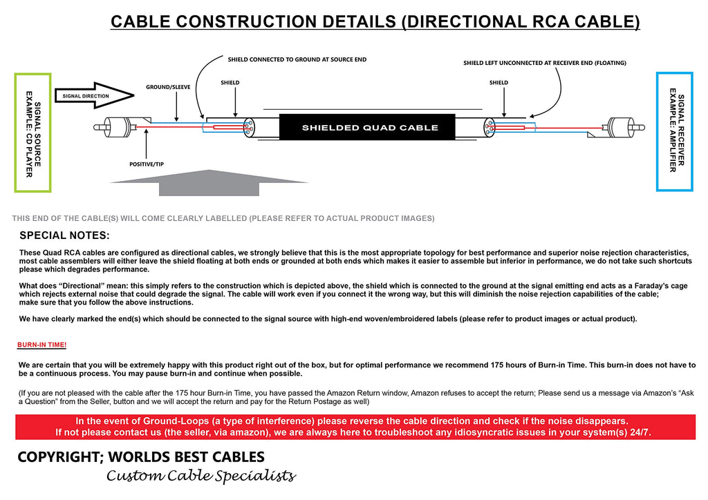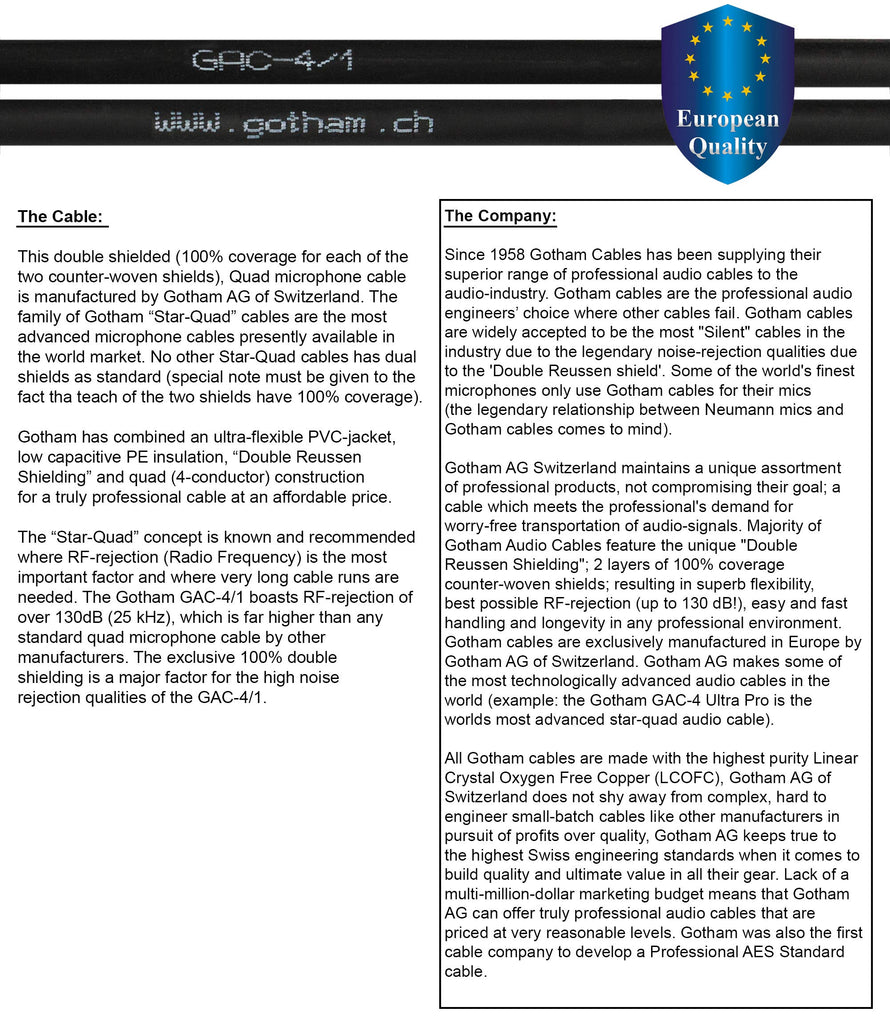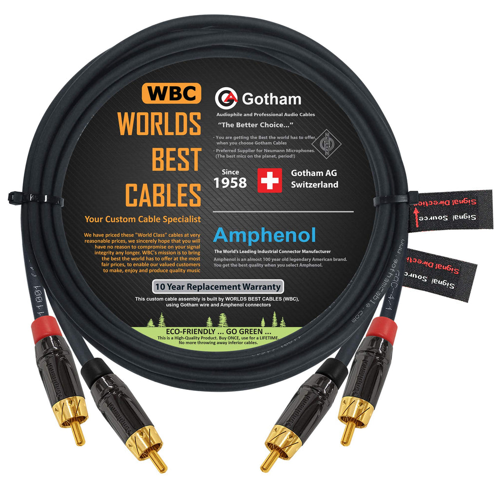 15 Foot Rca Cable Pair - Gotham Gac-4/1 (Black) Star-Quad Audio Interconnect Cable With Amphenol Acpl Black Chrome Body, Gold Pl