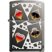 The Zippo 150 Black Ice Card Suits lighter features a unique Card Suits design with a sleek Black Ice finish.