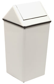 The swing top mechanism allows for easy access when disposing of waste. Users simply push the lid to open, enabling hands-free operation for convenient waste management.