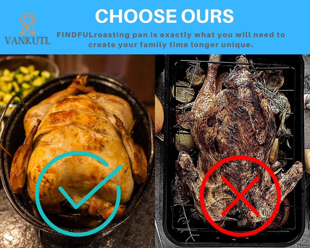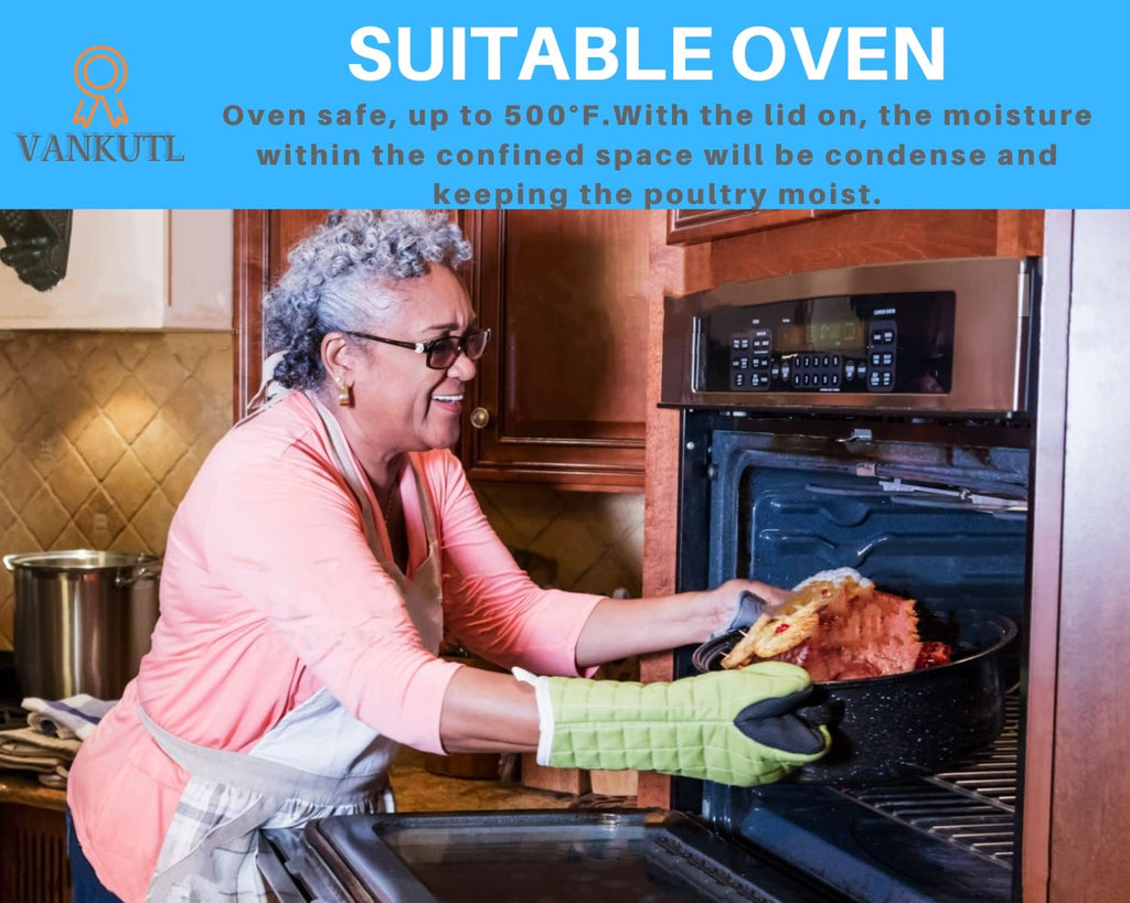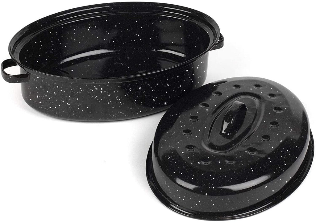16 Inch Roasting Pan with Lid - Covered Oval Roaster - Enamel Carbon Steel Roaster Pot - Excellent Heat Distribution and Non-sticky - for Turkey Chicken Meat & Vegetables -Birthday and Holiday gifts