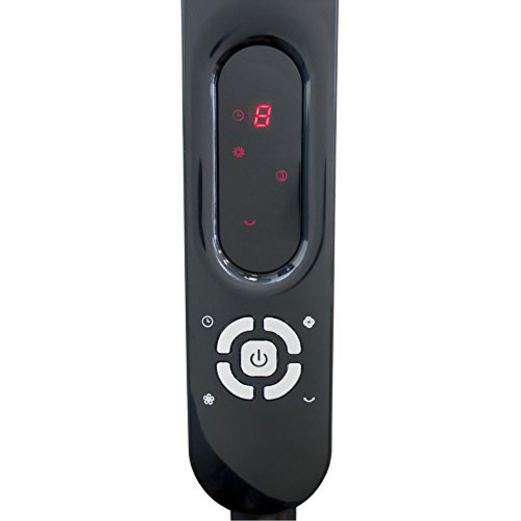 The fan includes a timer-off function that can be set for up to 8 hours, allowing you to run it for a specific duration before it turns off automatically.