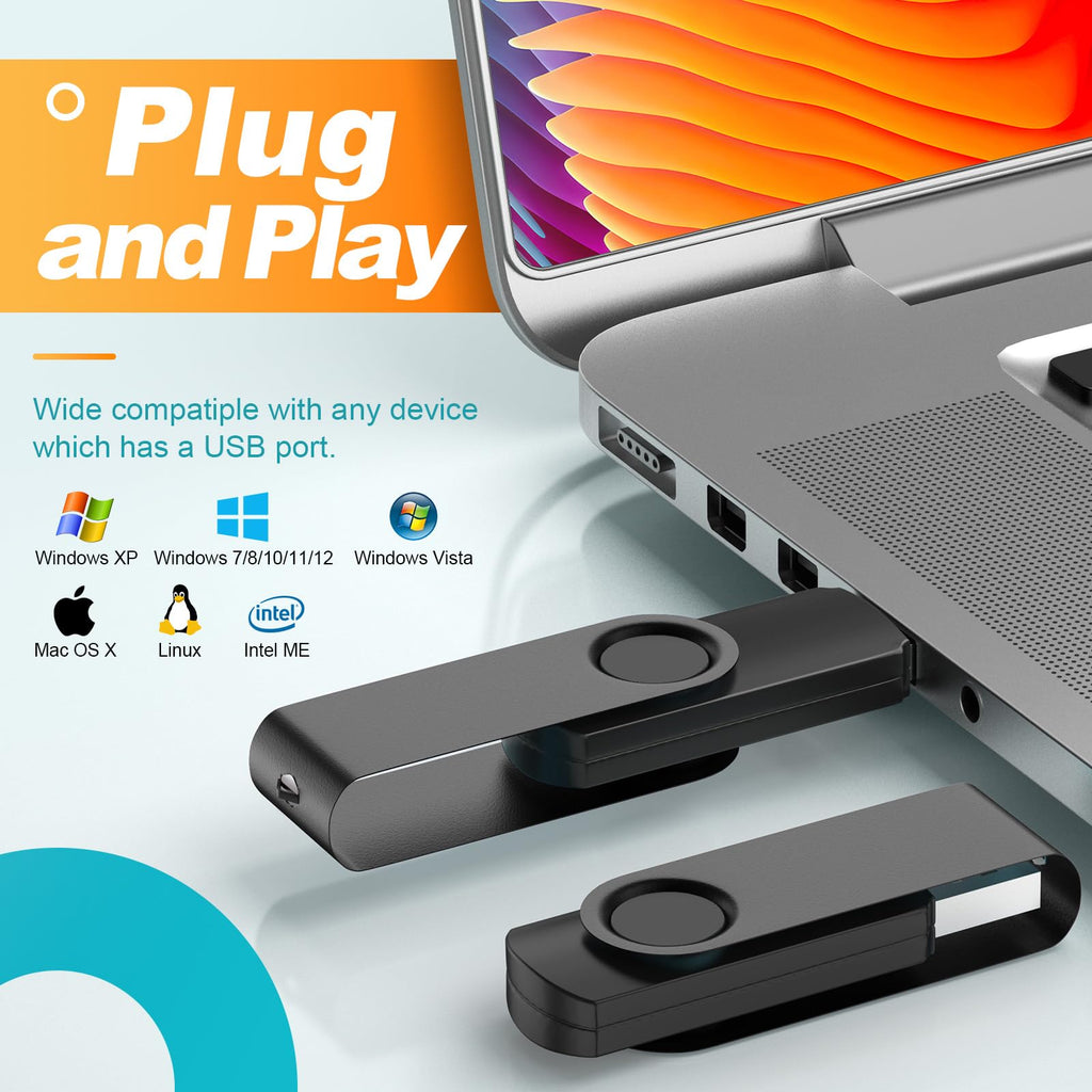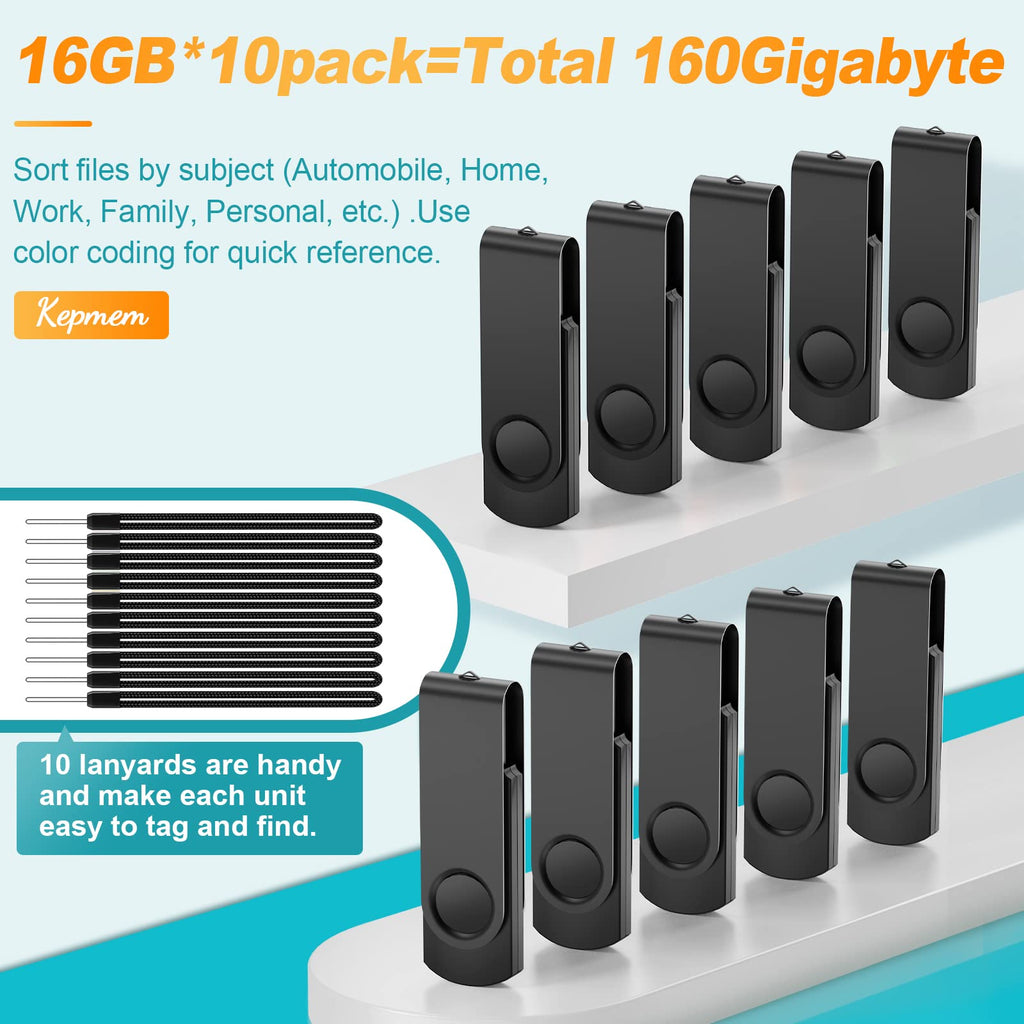 Quality bulk 16GB USB 2.0 flash drive pack of 10, fashion but cheap swivel zip drive. 1)Save time to upload files to email. Get rid of mess, make life and work to be easy. 2)Great gift choice to friend/family members/customers/clients/school/students/kids/mother/father/teacher/girlfriend/boyfriend. 3)Popular as birthday/mother's day/father's day/Valentine's day/teacher's day/Children's day/Christmas Day/New year gift. 4)Also can be used as company meeting gift/giveaway promotion gift/exhibition gift/commercial/education/government/healthcare storage devices. Features: 1)Interface: USB 2.0 (Backward usb 1.1) 2)Capacity: 16GB. Please note 1GB=1024MB 3)Material: Metal&plastic 4)Lightweight and convenient: You can buckle flash drive on your keychain or carry by USB lanyard. About technology: 1)Support system: Windows 7/8, Windows Vista, Windows 2000, Mac OS X, Linux. U disks almost can be used in any USB devices. Save data of Files, Video, Music, Photos, Movies, Designs, Manuals, Programs and so on. 2)Operating temperature: 32 F to 140 F (0 C to 60 C) 3)Storage temperature: -4 F to 185 F (-20 C to 85 C) 4)Lifetime: 50,000 times read & write 5)Technology points: The USB flash stick has the compatibility of both FAT32 and NTFS format. Before you use flash drive, please format it in the first time. System program will take some space, so available storage capacity is less than 16GB. Friendly Tips: USB memory storage is tested before shipping out, please feel free to buy! Packing Content: 10 x 16GB black usb memory stick.