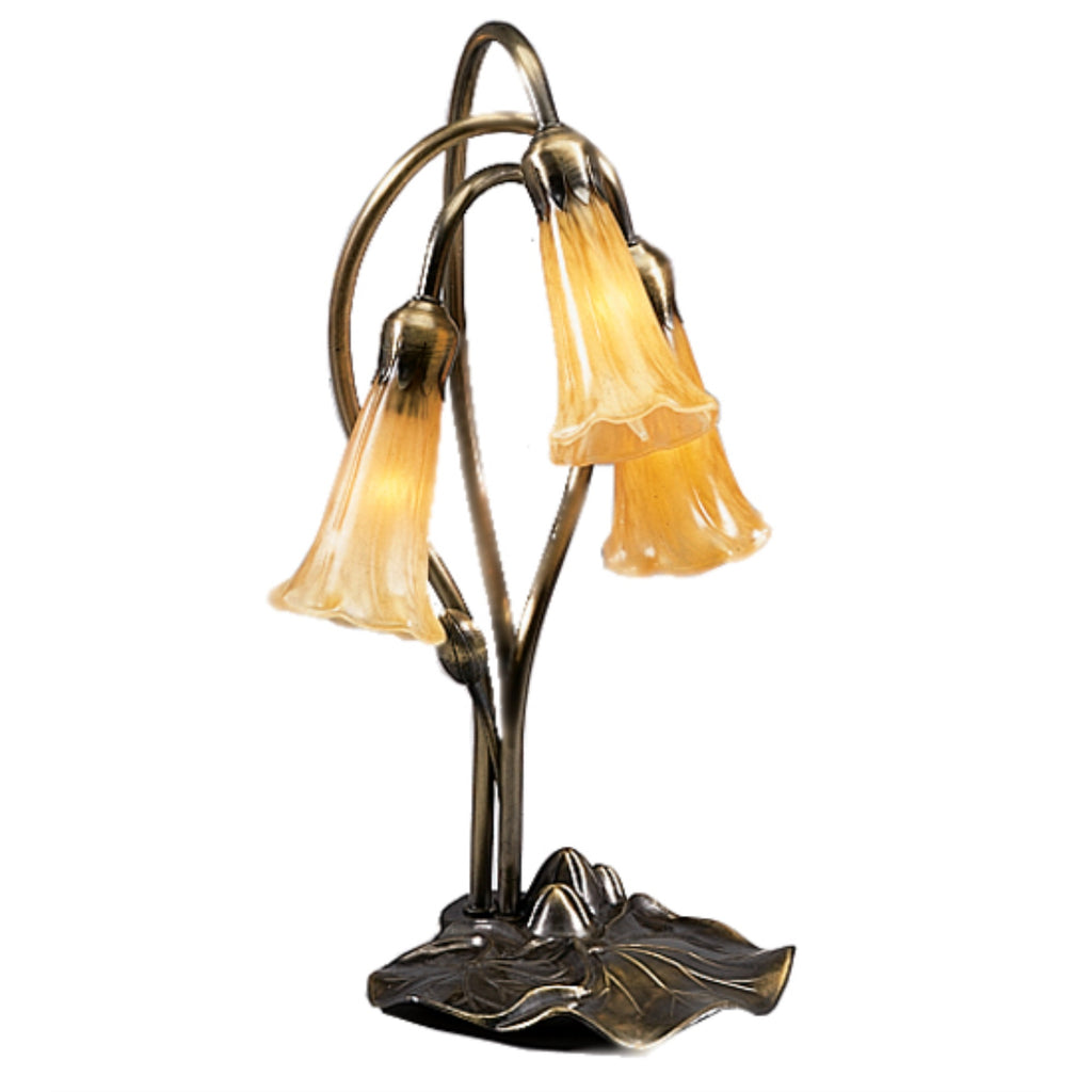 13636 16H Amber Pond Lily 3 Lt Accent Lamp Manufacturer By Meyda. One Of The Most Popular Louis Comfort Tiffany Styled Lamps On The Market Today; Recreating His Famous Favrile Design From The Early 1900'S. This Mottled Rich Amber Shaded 3 Light Accent Lamp Offers An Attractive; Delicate Design Featuring Shades Mouth Blown Of Fine Art Glass. Lily Shades Are Suspended From Stems Delicately Winding Above A Lily Pad Base Finished By Hand In Mahogany Bronze. Lens Color : Coral;Sunflower;Amber Glass (Not Mica);Chocolate, Made In China