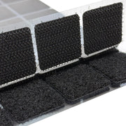 The adhesive strips are black, providing a discreet appearance when used on various fabrics.