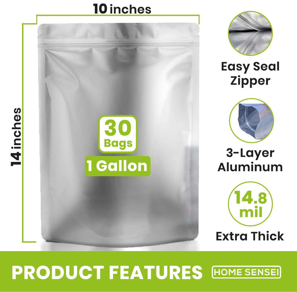 30 mylar bags for food storage with oygen absorbers - 1 gallon - 15 Mil Thick - 30 oxygen absorbers of 400cc