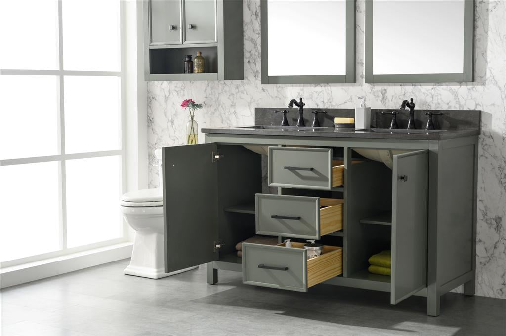 54 Pewter Green Finish Double Sink Vanity Cabinet With Blue Lime Stone Top