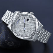 The Aristocratic Steel Automatic CZ Watch is crafted from high-quality stainless steel, which offers durability and a polished finish.