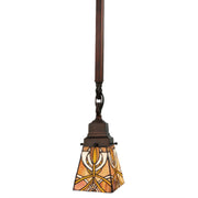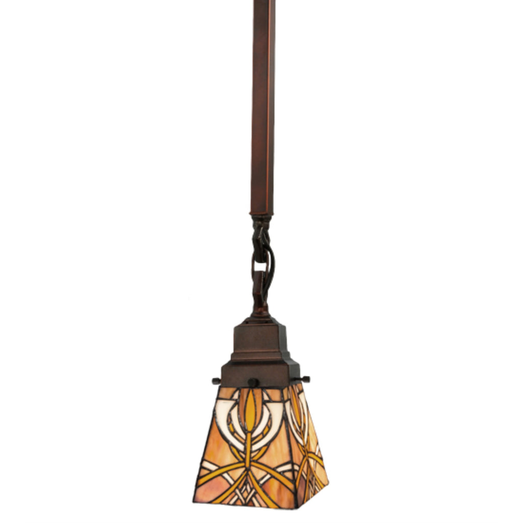 49139 5Sq Glasgow Bungalow Mini Pendant.609 Manufacturer By Meyda. This Meyda Tiffany Original Mini Pendant Is Inspired By The Art And Architecture Of Charles Rennie Mackintosh And The Glasgow School Of Art. Amber-Mauve And Gold Stained Glass Make Up The Intricate Patterned Shade That Is Suspended From Mission Style Hardware In A Warm Mahogany Bronze Finish. Lens Color : Mauve;Coral;Sunflower;Amber Glass (Not Mica);Chocolate;Beige, Made In China