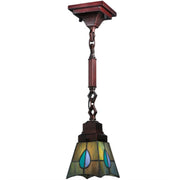 This pendant light features a stained glass shade and a mahogany bronze finish.