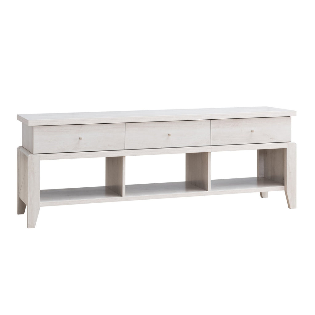 The entertainment console features three spacious gliding drawers, which are perfect for storing media devices and accessories.