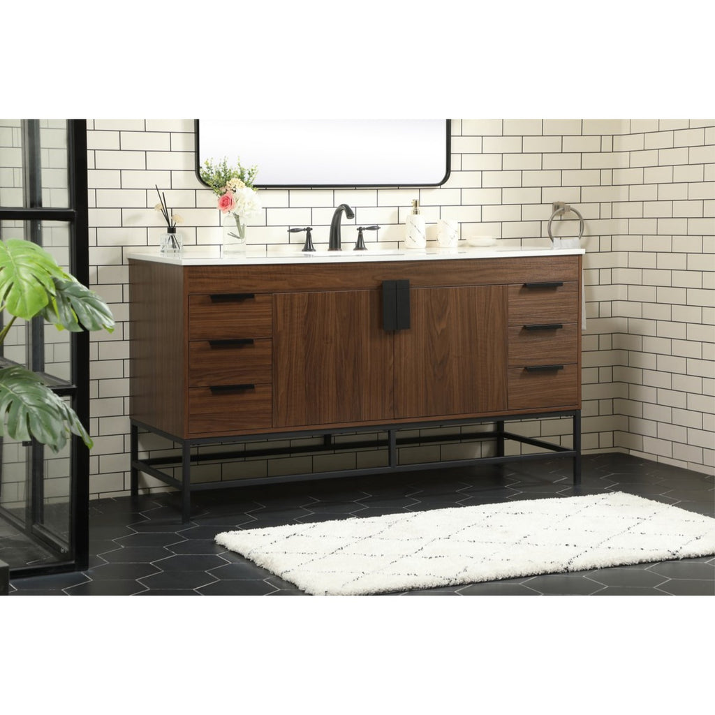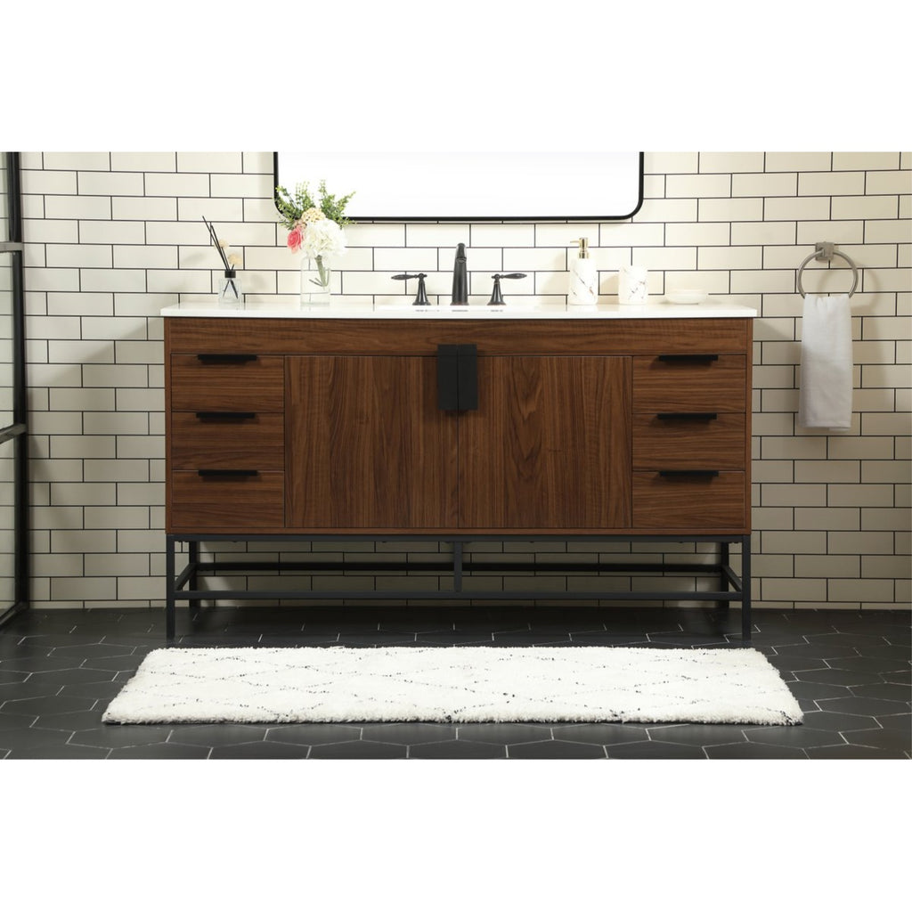 The dimensions of the vanity are 60 inches in length, 22 inches in width, and 33.5 inches in height.