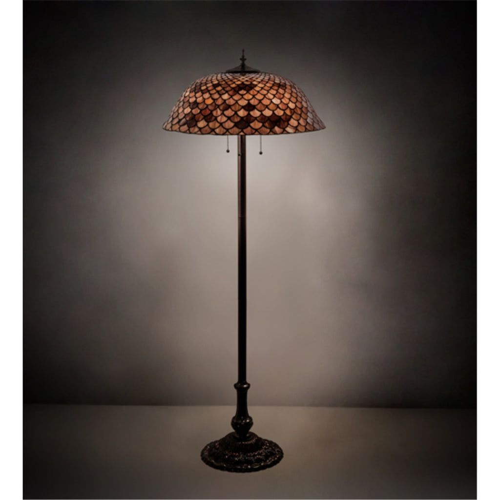 81064 64H Tiffany Fishscale Floor Lamp Manufacturer By Meyda. A Louis Comfort Tiffany Studio Classic Fishscale Pattern Reproduced In Variegated Tortoiseshell Of Ambers And Burgundy. This Handsome Stained Glass Shade Is Used With Mahogany Bronze Hand Finished Hardware. A Versatile Floor Lamp To Complement Any Color Or Style. Lens Color : Mauve;Beige, Made In China
