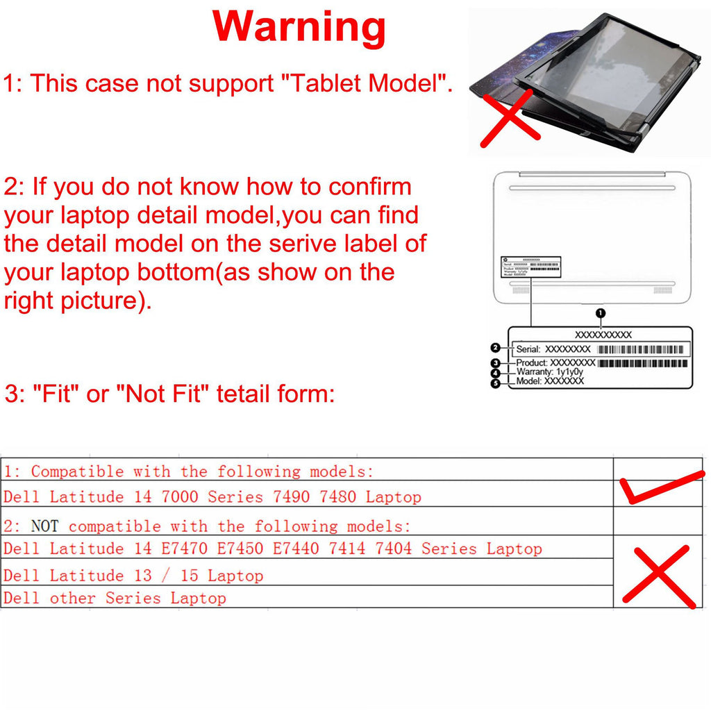 1.Which Model Of Laptop Is This Case Compatible For? It Is Only Compatible With The Following Models:14 Inch Dell Latitude 14 7000 Series 7490 7480 Laptopnot Compatible With:(1)Not Compatible With 14 Inch Dell Latitude 14 7400 E7470 E7450 E7440 7414 7404 Series Laptop(2)Not Compatible With Other Dell Series Laptop(3)Not Compatible With Other Bands And Inches Laptopwarning:Most Of The Returns Are Due To Wrong Model,If You Can'T Confirm Whether Your Laptop Model Is Suitable For This Case,Please Contact Our Customer Service To Avoid Buying The Wrong Type Of Products.2.What'S The Main Features Of This Laptop Case ?(1):The Specially-Designed Pu Leather Case For The Laptop Has The Special Screen Pu Leather Frame,Which Can Full Protect The Laptop From Scratch And Dust.(2):This Protective Cover Is Made Of The High-Quality Pu Leather,Characterized By The Beautiful Appearance And Fine Hand Feeling;The Inner-Layer Soft Cashmere Can Better Protect The Laptop.(3):Unique Design With Two Elastic Rubber Bands Could Solve The Problem Of Loose Cover Effectively In The Process Of Using Laptop.(4):All Procedures Are Finished By Hand-Sewing,Which Can Make Sure For Durable Using In Future. Included In Packaged : 1 X Pu Leather Laptop Case