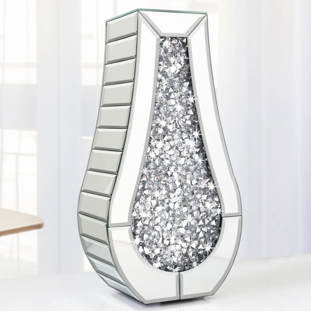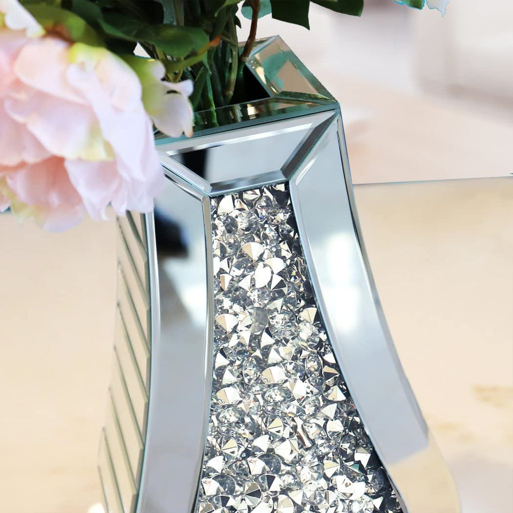 ALLARTONLY Crushed Diamond Mirror Vase Crystal Silver Glass Stunning Decorative Vase Flower Luxury for Home D cor. Cant Hold Wa
