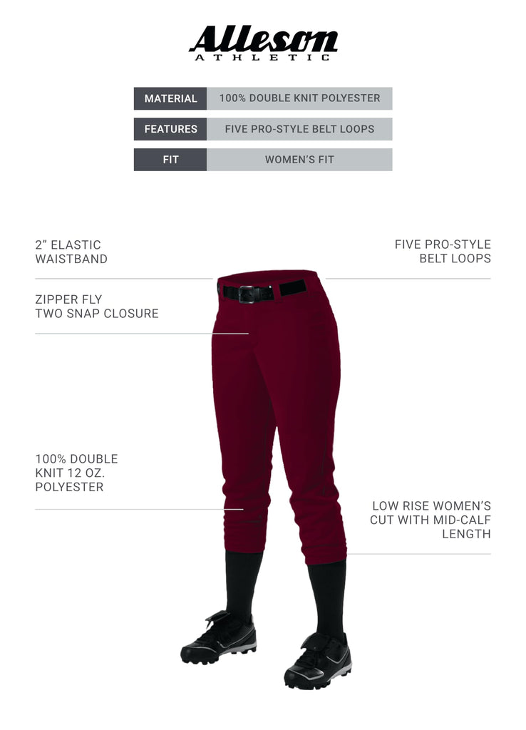 Alleson Ahtletic Women'S Fast Pitch Softball Belt Loop Pants, Maroon, Large